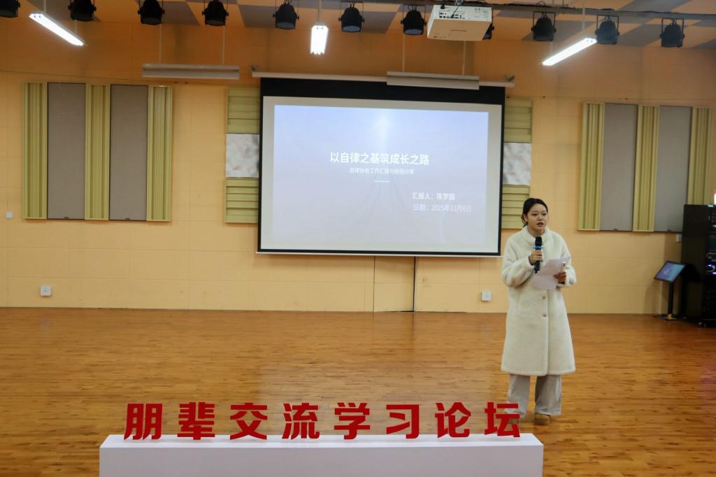 论坛以“朋辈同行·赋能成长·共话未来”为主题,邀请williamhill威廉希尔2025年国家奖学金获得者冯国洋、陕西省第44届大学生运动会优秀运动员梁帅、优秀班干部孟令博、韩奥悦、艺术学生自主管理协会负责人陈梦圆等同学结合各自实际倾情分享,干货满满、氛围热烈。冯国洋以《如何掌握你的才华》为题,结合艺术类专业特性,从天赋挖掘、持续练习到实践转化,为同学们解锁成长进阶的实用路径;梁帅围绕《在奔跑中淬炼自己》,分享了在体育锻炼中直面挑战、突破自我的成长故事,传递了坚持不懈的运动精神;孟令博以《指尖的烟火,拥抱清新呼吸》为主题,分享了各自在班级、宿舍管理中生活感悟;韩奥悦带来《以心聚力,以行筑家——优秀宿舍舍长管理经验分享》,聚焦宿舍集体建设与团队协作,为学生干部与宿舍长提供了凝聚力量、共建优良集体的宝贵经验。作为学生自主管理协会负责人,陈梦圆详细汇报了协会的工作成效与工作设想,通过具体案例分享了学生自律管理的实践经验,倡导同学们在自我约束中锤炼品格、提升素养。